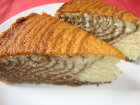 This is a delicious moist zebra cake lined with cocoa strips!